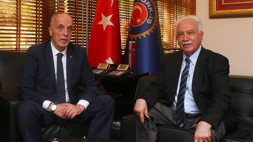 Vatan Partisi Genel Başkanı ve cumhurbaşkanı adayı Doğu Perinçek, Türkiye İşçi Sendikaları Konfederasyonu (Türk-İş) Genel Başkanı Ergün Atalay'ı sendika genel merkezinde ziyaret etti. Perinçek, terör örgütleri FETÖ ve PKK'ya karşı mücadelede Türk-İş'in önemli sınavlar vererek örnek bir tavır aldığını söyledi.